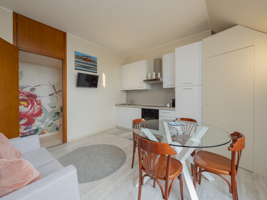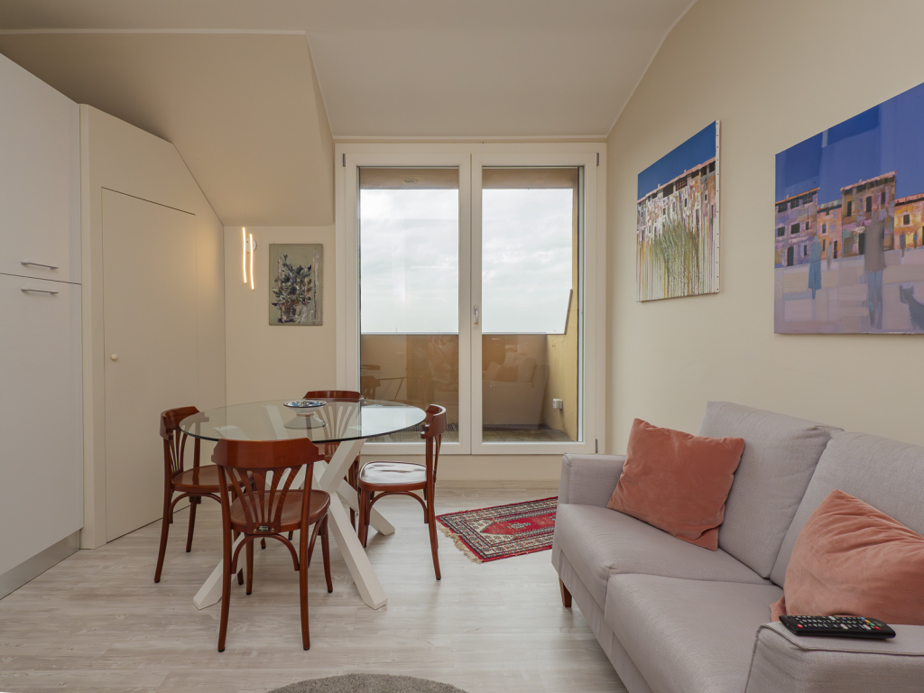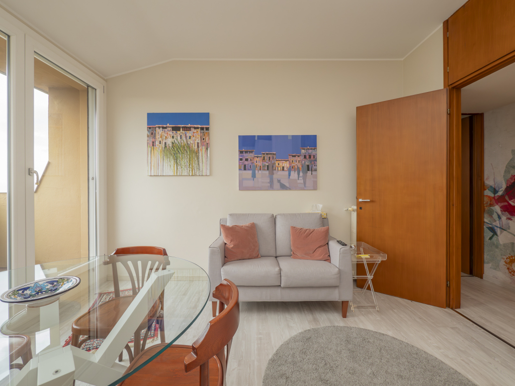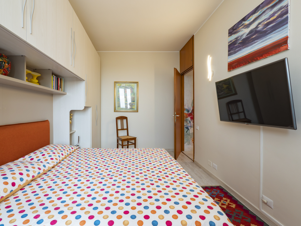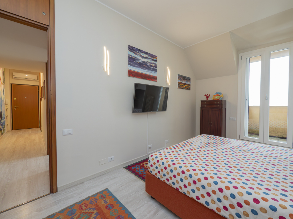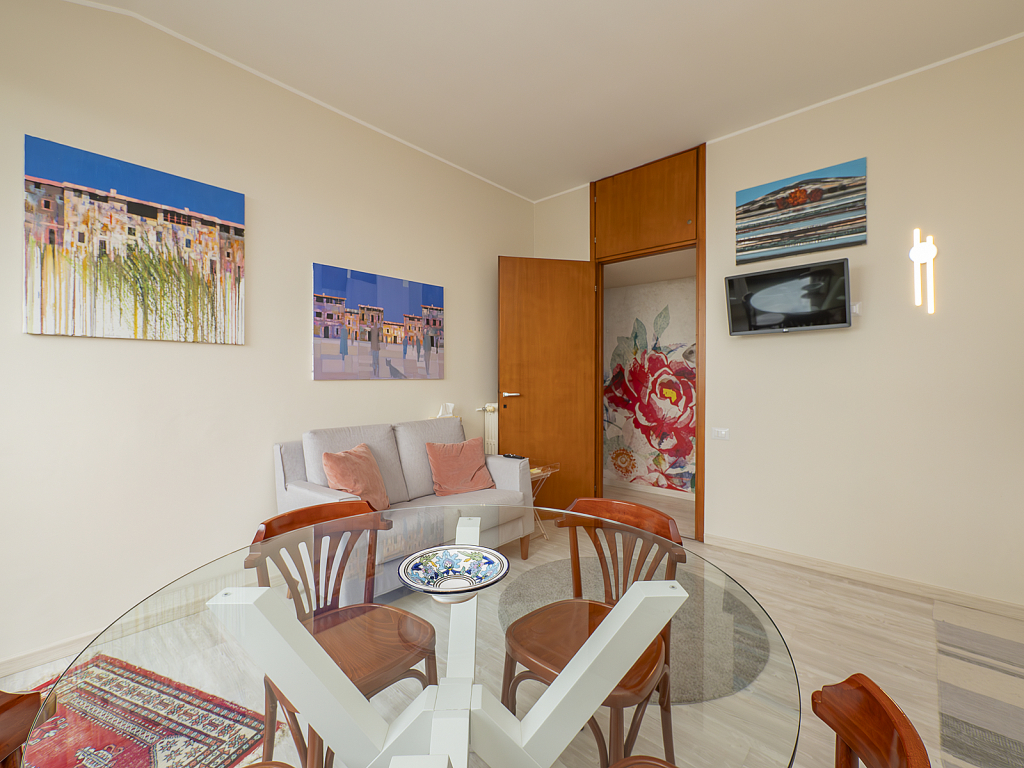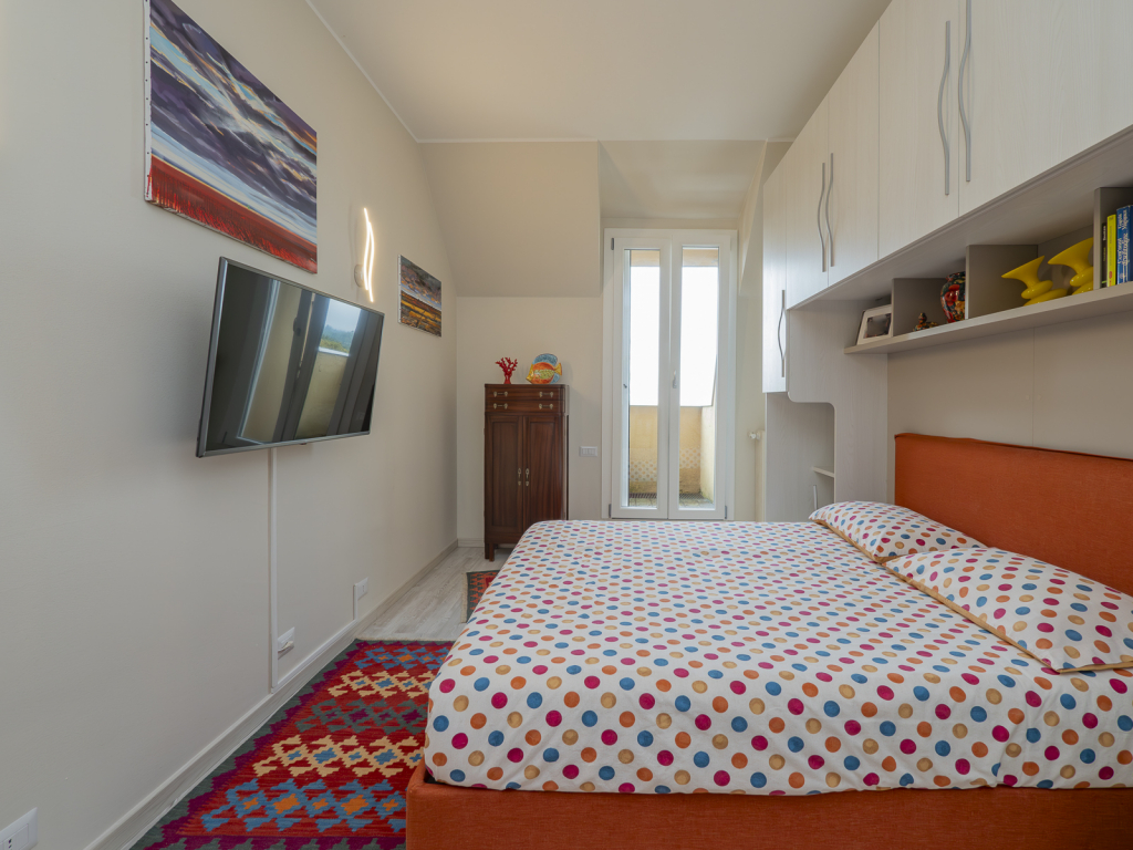 Bilocale di mq 50 Totalmente ristrutturato nel 2019  all’ultimo piano in una zona centrale ben servita a pochi passi dalle Terme . L’appartamento al 6° piano è situato in uno stabile signorile di 6 piani degli anni ‘70 con ascensore fino al 5° piano. L’appartamento è composto da ingresso, bagno finestrato, soggiorno con cucina a vista con accesso al terrazzo panoramico, camera matrimoniale con accesso al terrazzo panoramico. E’ presente l’aria condizionata, pavimento in gress , infissi in PVC  con doppi vetri, due ripostigli in quota. Riscaldamento centralizzato con valvole termo-valvole. Molto luminoso e silenzioso.  Completa la proprietà un posto auto. Spese condominiali circa di €  1.200 annue.   Nei dintorni sono disponibili tutti i servizi principali: parchi, poste, scuole e mezzi pubblici.