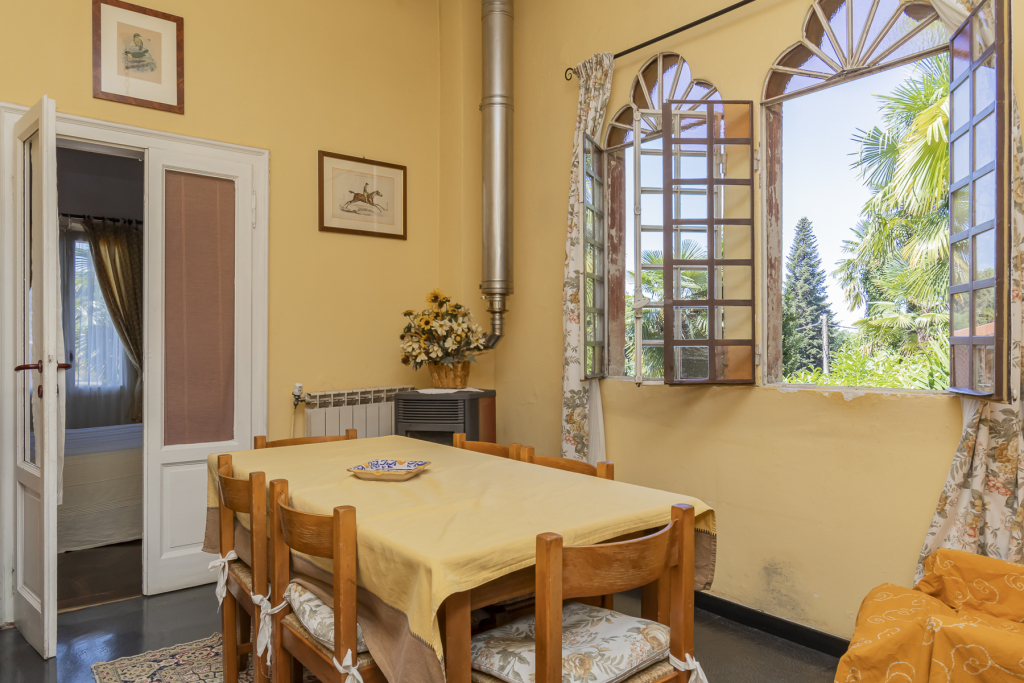 Propone nella zona San Ambrogio immersa nella tranquillità di una grande area verde privata di circa mq 2495,70, proponiamo una villa del 1900 sui quattro lati liberi e posta al centro di un rigoglioso giardino piantumato e ben curato , con alberi da frutta e piante fiorite.. Grande plus la terrazza . Nello stesso giardino insiste una dependance di 82 mq ca indipendente. La villa di circa mq 360 all’interno è divisa in due piani più torretta . Ogni piano è accatastato con sub diversi e un piano è accatastato in A/8, mentre gli altri in A/3. Al piano terra di circa mq 166 attraverso una piccola scalinata troviamo una piccola veranda da cui si accede in cucina, e da una porta finestra da cui si accede in un ampio salone dotato di camino in pietra e illuminato naturalmente da quattro finestre e dalla porta finestra dalle grandi vetrate che permettono al sole di irradiare di luce naturale tutta la stanza. Sempre sullo stesso piano troviamo la zona notte con un bagno finestrato e due ampie camere. Attraverso la scala d’epoca interna, che collega i piani si accede al primo piano di circa mq 134 con accesso privato. Qui l’area si sviluppa in due ampie camere da letto, cucina, soggiorno con un camino, due servizi. Proseguendo arriviamo al terzo piano caratterizzato a torretta di circa mq 60 adibita a bilocale, attualmente con cucinotto, camera e servizio. Dalla parte esterna della villa si accede al seminterrato.